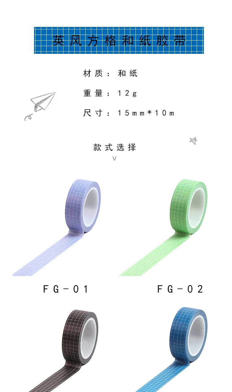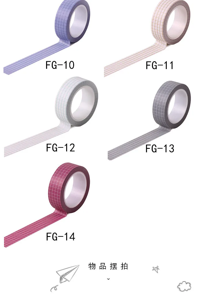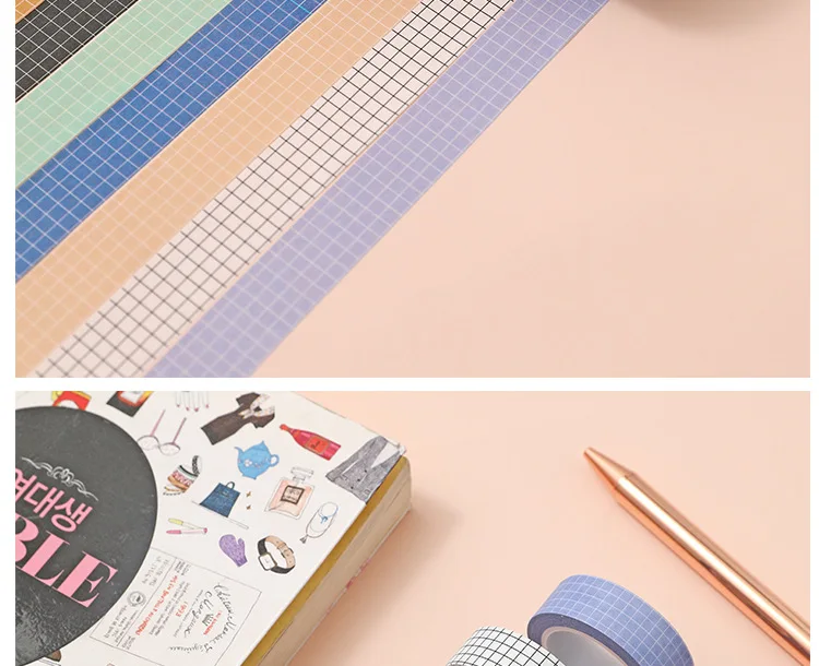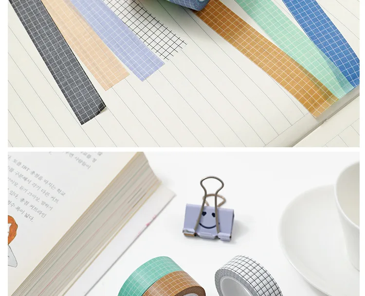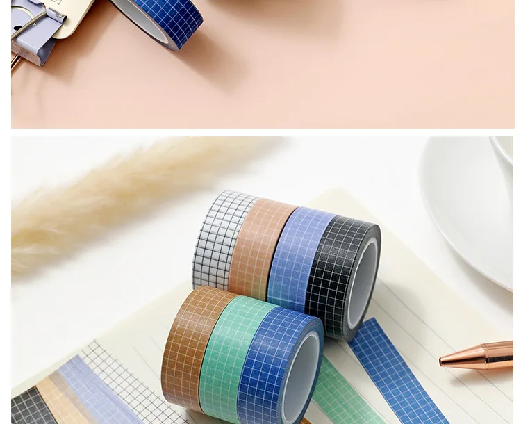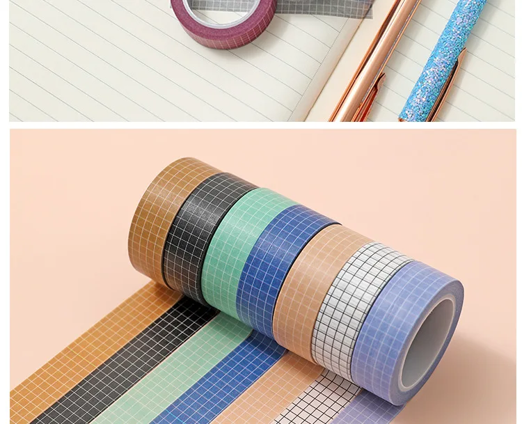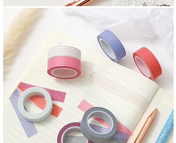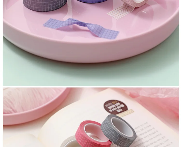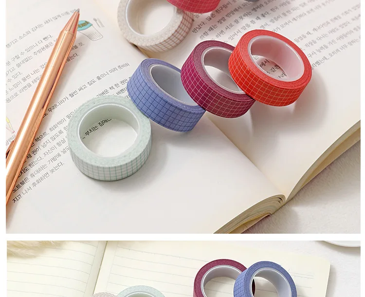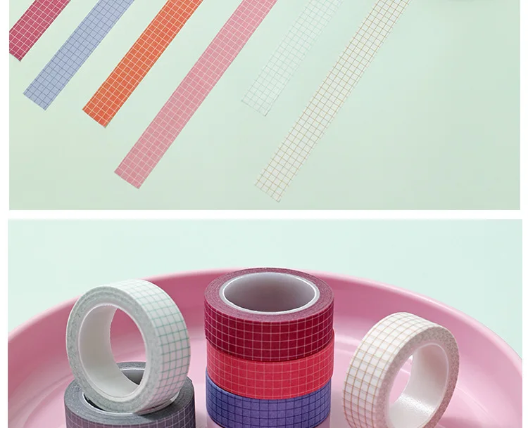 10M Pure Color Grid Washi Tape Set for Journals