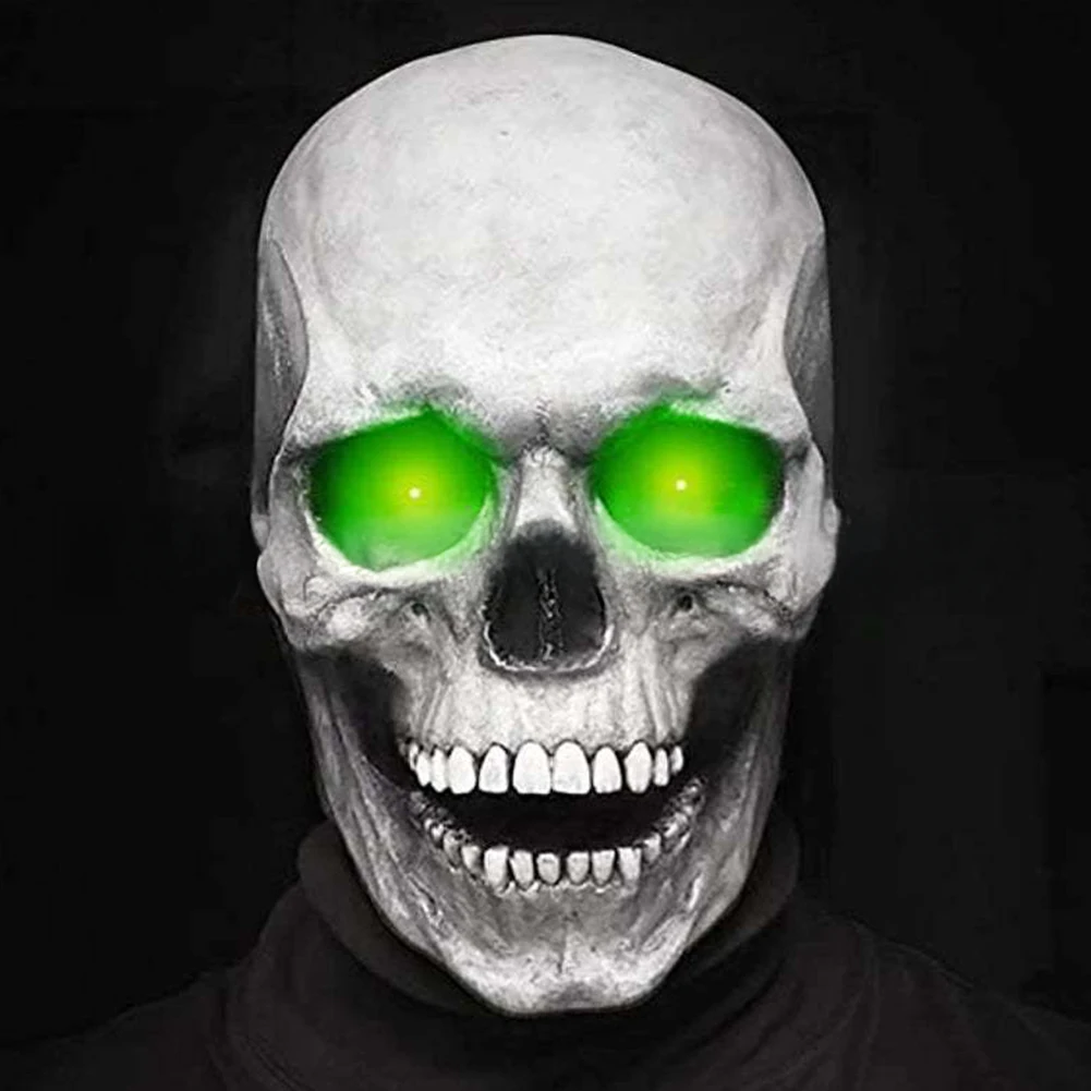 Animated Moving Jaw Skull Mask with Green LED Eyes