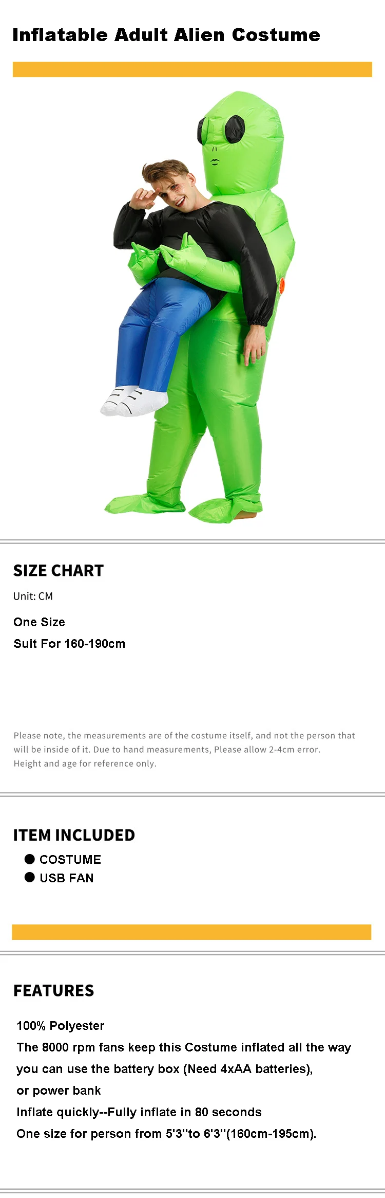 Inflatable Green Alien Adult Costume for Parties